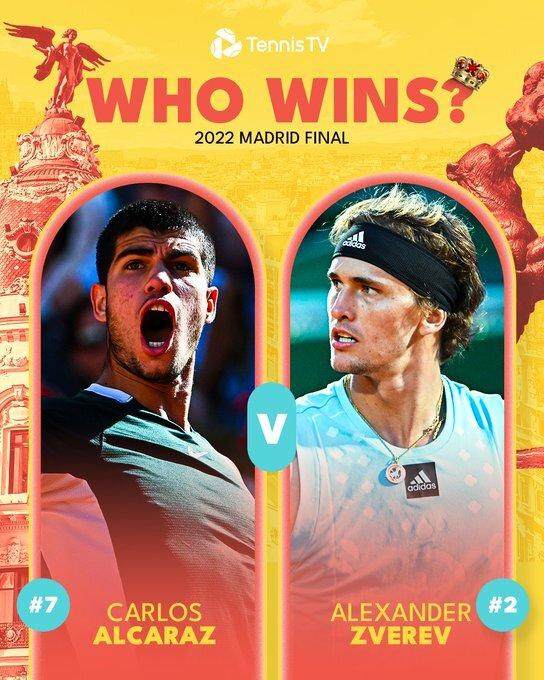 没有想在乌鸦嘴,也是有点担心这件事的发生。阿尔卡拉斯本届赛事的表现,配得上一个含金量十足的冠军。但兹维列夫在马德里一向很强,这回已是争取赛会第3冠,这个红土赛事他还有望争一争世界第一——和德约与梅德维德夫一起。